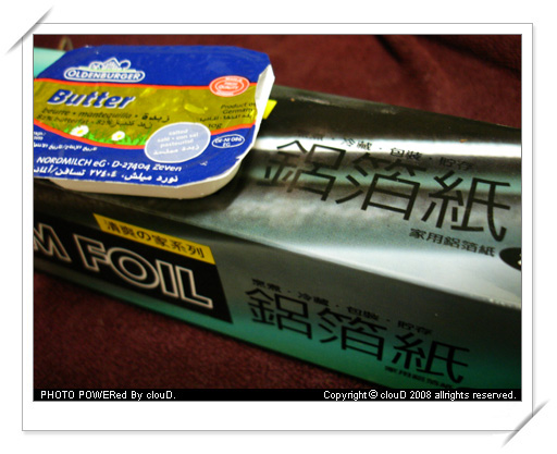 另外還有忘了幾隻的蝦子、兩隻小龍蝦、以及半尾魚。貼心的老闆知道大家中秋節要烤海鮮還特地附了錫箔紙跟奶油,這超貼心的啦,就差沒多附一包衛生紙(誤。